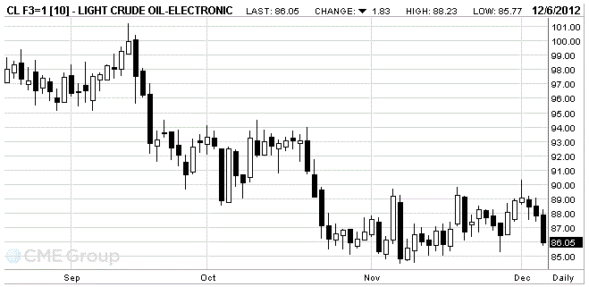 Стоимость январских фьючерсов на американскую легкую нефть марки WTI (Light Sweet Crude Oil) упала до 86,05 доллара за баррель на Нью-Йоркской товарной бирже.