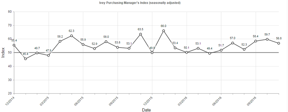 15:00 Канада Индекс деловой активности менеджеров от Ivey Ноябрь 59.7