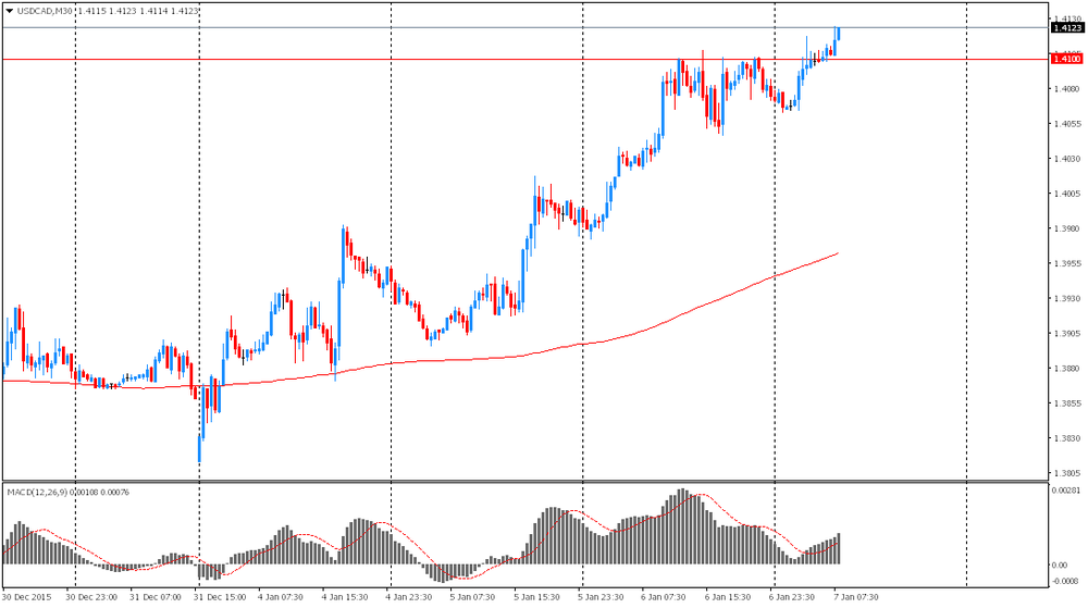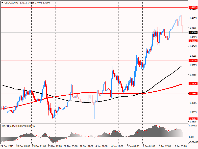 Канадский доллар обвалился более чем на 100 пунктов против доллара США, достигнув психологический отметки CAD1.4100 и обновив 12-летний минимум. Основной причиной такой динамики было значительное снижение цен нефть из-за беспокойства о переизбытке сырья. Вчера Американский институт нефти опубликовал свой отчет, который показал сокращение запасов нефти на 5,6 млн баррелей с 26 декабря по 1 января. Согласно этому отчеты, запасы бензина выросли на 7,1 млн баррелей, а запасы дистиллятов - на 5,6 млн баррелей. Управление энергетической информации США в среду сообщило о падении коммерческих запасов нефти в США на 5,09 млн баррелей на прошлой неделе, тогда как аналитики предполагали рост на 300 000 баррелей. Однако в то же время стало известно о сильном росте запасов бензина и дистиллятов. Запасы нефти в терминале Кушинга достигли нового рекордного максимума.