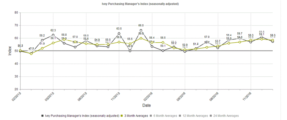 15:00 Канада Индекс деловой активности менеджеров от Ivey Январь 60.8