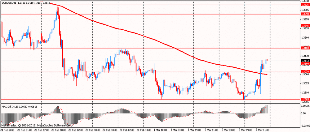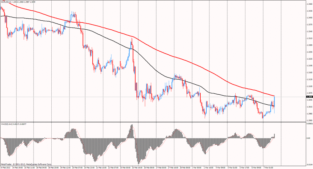 Индекс доллара торгуется вблизи своих максимальных уровней за последних шесть месяцев, на фоне улучшения ситуации на рынке занятости в США. Рост занятости может подтолкнуть Федеральную резервную систему к более раннему сворачиванию стимулирующих программ, чем первоначально планировалось. Вчерашний отчет по занятости показал, что американские компании добавили больше рабочих мест, чем прогнозировалось в феврале. Согласно данных ADP, занятость в стране выросла в стране на 198 тыс, превзойдя ожидания аналитиков. Позитивные данные по рынку труда США указали на продолжающийся рост занятости, несмотря на экономические и бюджетные трудности, создаваемые безрезультатными дебатами в Вашингтоне по бюджету. Однако, окончательные официальные данные от Министерства труда США будут опубликованы завтра. Согласно средней оценке аналитиков количество новых рабочих мест в феврале может увеличится на 163 тыс., против роста на 157 тыс. в предыдущем месяце. Уровень безработицы должен составить 7,9%.