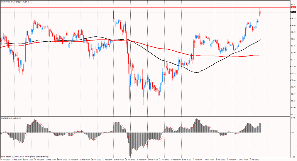Иена ослабла до самого низкого уровня с августа 2009 года по отношению к доллару после заключительного заседания Банка Японии во главе с Масааки Сиракава на фоне слухов о том, что его преемник будет расширять меры кредитно-денежного стимулирования, чтобы понизить валюту. Банк Японии сегодня отверг призыв к немедленному началу открытой покупки активов на заключительном заседании Масааки Сиракава, прежде чем его заменит Харухико Курода. Заметим также, что Банк Японии сохранил программу покупки активов на прежнем уровне Y76 трлн иен ($ 809 млрд.) и ежемесячных покупок гособлигаций на уровне Y1,8 трлн, оправдав ожидания экономистов.