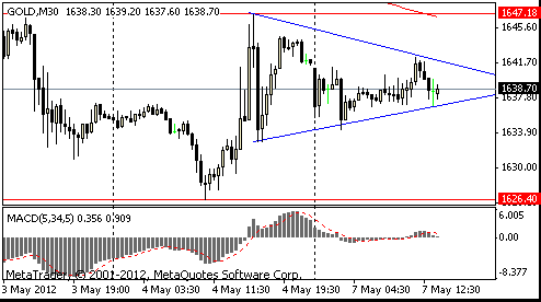 Стоимость июньских фьючерсов на золото на COMEX сегодня снизилась до уровня $1632,2 за унцию и в настоящий момент торгуется на уровне $1637,9 за унцию.