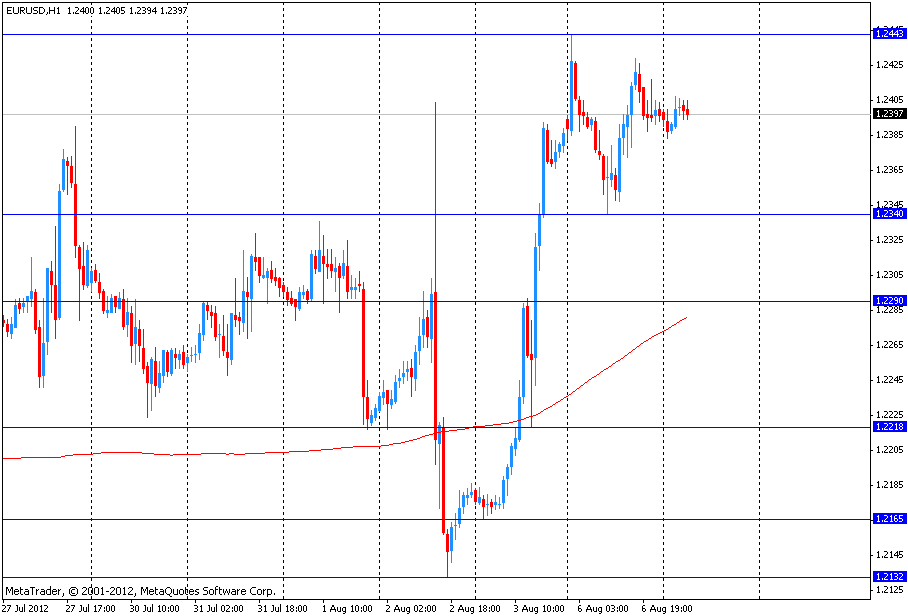 Евро немного вырос после того, как правительство Ангелы Меркель одобрило предложение президента ЕЦБ Марио Драги относительно покупок государственных облигаций Испании и Италии, с целью понижения их уровня доходности. Так вчера в Берлине заместитель пресс-секретаря Меркель, Georg Streiter, сообщил журналистам, что Германия "не против" плана Драги, озвученного им 2 августа. Детали данного плана должны быть опубликованы президентом ЕЦБ до конца августа.