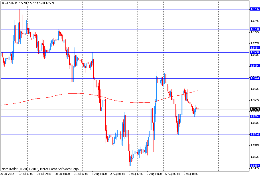 Пара GBP/USD снизилась почти на пол фигуры после того, как установила максимум сессии на уровне $1.5685, обновив при этом максимальные значения 2 августа. Данный уровень оказал небольшое сопротивления для восходящего движения, что и вызвало падение. После небольшого отката рост может продолжится, и ближайшей целью теперь будет уровень $1.5730