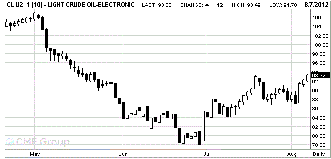 Стоимость сентябрьских фьючерсов на американскую легкую нефть марки WTI (Light Sweet Crude Oil) на NYMEX выросла до уровня $93,28 за баррель.