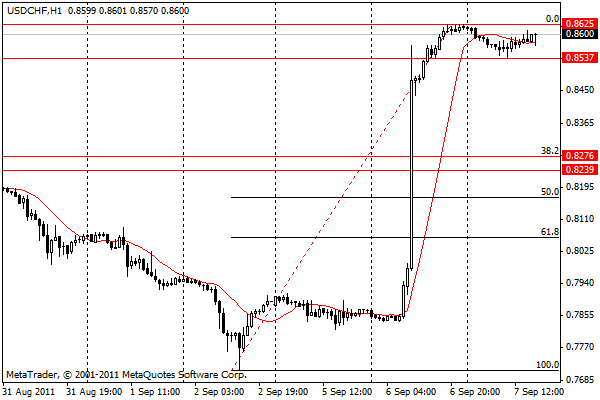 Сопротивление 1: Chf0.8625 (область максимума 6 сентября)