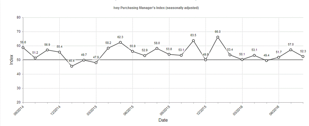 14:00 Канада Индекс деловой активности менеджеров от Ivey Август 57