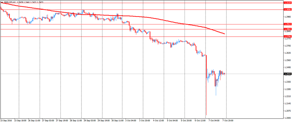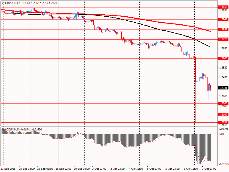 Фунт стерлингов рухнул до самого значительного минимума за последние десятилетия с 1,2620 до 1,2030, на фоне опасений по поводу выхода Великобритании из ЕС. Вероятно такое падение связано с крайне низким объемом торгов с начала сессии. Также катализатором снижения фунта могли стать высказывания президента Франции Олланда в Financial Times. Франсуа Олланд присоединился к негативно настроенным представителям ЕС, призвав вести жесткие переговоры с Великобританией по выходу из еврозоны. Мнение со стороны Франции важно, потому что позиция ЕС в основном определяется Германией и Францией.