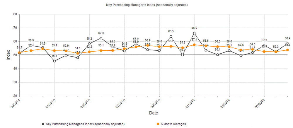 14:00 Канада Индекс деловой активности менеджеров от Ivey Сентябрь 52.3