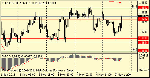 Позже евро отступил от достигнутых минимумов на фоне слухов о том, что премьер-министра Италии Берлускони в ближайшее время может подать в отставку. Не смотря на то, что сам Берлускони данные слухи опроверг, евро остался в торговаться в области достигнутых на фоне данных сообщений уровней.