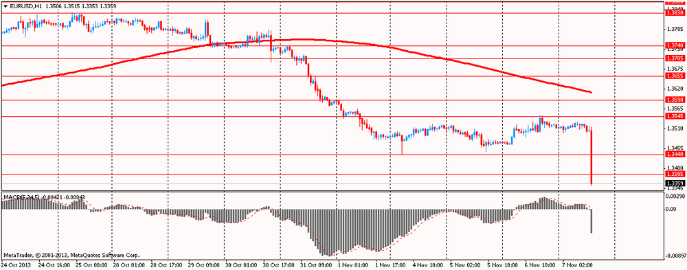 Отметим, что сегодня давление на евровалюту оказало решение ЕЦБ понизить основную ставку рефинансирования до нового рекордного минимума, а также ставку кредитования, как и прогнозировали некоторые аналитики после того, как на прошлой неделе данные по инфляции еврозоны вышли намного хуже ожиданий. Управляющий Совет ЕЦБ понизил основную ставку рефинансирования на 25 б.п. до 0,25%. Банк также понизил ставку по кредитованию на 25 б.п. до 0,75%, тогда как ставка по депозитам осталась без изменений на уровне 0,00%. ЕЦБ воздерживался от понижения ставки с мая.
