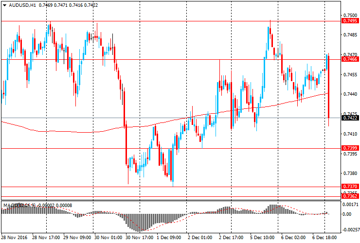 Австралийский доллар резко упал после публикации данных по ВВП Австралии. Согласно отчета австралийского бюро статистики, экономики Австралии в третьем квартале ослабла на -0,5%, что значительно ниже прогноза экономистов 0,3%. Значение второго квартале было пересмотрено с 0,5% до 0,6%. В годовом исчислении данный ВВП Австралии вырос на 1,8%, после зафиксированного роста на 3,3% годом ранее. Аналитики ожидали рост показателя на 2,5%. Пара AUD/USD упала до минимума $0,7418 с $0,7465