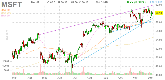 На текущий момент акции Microsoft (MSFT) котируются по $60,18 (+0,38%)