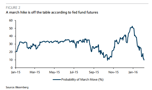 "Доклад по занятости за январь послал смешанные сигналы о состоянии рынка труда США: негатив от слабых темпов роста занятости в несельскохозяйственном секторе был частично нивелирован более значительным, чем ожидалось повышением заработной платы. Слабость занятости в секторе услуг станет источником беспокойства для FOMC, однако, мы теперь ждет только два повышения ставки в 2016 году. Кроме того, мы по-прежнему уверены в "здоровье" рынка труда и считаем, что экономика выдержит рост процентной ставки". В целом, рыночные инструменты указывают на медленные темпы повышения ставки, и их переоценка будет поддерживать доллар США в ближайшие месяцы. В этой среде, рынок будет искать подсказки о темпах цикла ужесточения денежно-кредитной политики", - заявили эксперты,
