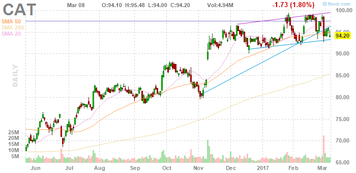 На текущий момент акции Caterpillar (CAT) котируются по $94,20 (-1,80%)