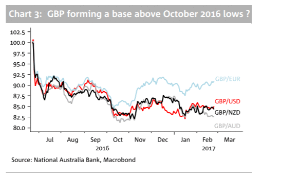 "Для британского фунта, сочетание слабеющего, но по-прежнему приличного экономического роста Великобритании, сильного политического руководства и менее благоприятного краткосрочного прогноза по доллару США, заставило нас пересмотреть на повышение текущий прогноз на ближайшие несколько кварталов. Период максимальной политической опасности, возможно, уже прошел, и хотя данные IMM показывают, что позиции были несколько сокращены, на рынке по-прежнему остается большой объем чистых коротких позиций по фунту. Мы не считаем, что в среднесрочной перспективе фунт будет дорожать, и до сих пор полагаем, что долгие и трудные переговоры с партнерами по ЕС будут оказывать давление на валюту во 2-й половине 2017 года и за его пределами. Стоит подчеркнуть, что улучшение нашего прогноза по фунту в краткосрочной перспективе в большей мере обусловлено изменением ожиданий по доллару, нежели фундаментальной переоценкой перспектив экономики Великобритании, учитывая скорое начало переговоров по Брекзиту. В целом, мы прогнозируем, что пара GBP/USD достигнет уровня 1,25 к концу 1-го квартала, и снизится до 1,22 к концу текущего года", - заявили эксперты.