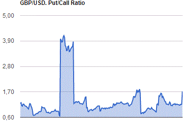- общий открытый интерес по PUT опционам с датой экспирации 3 мая составляет 9445 контрактов, при этом максимальное количество контрактов привязано к страйку $1,4700 (1602);