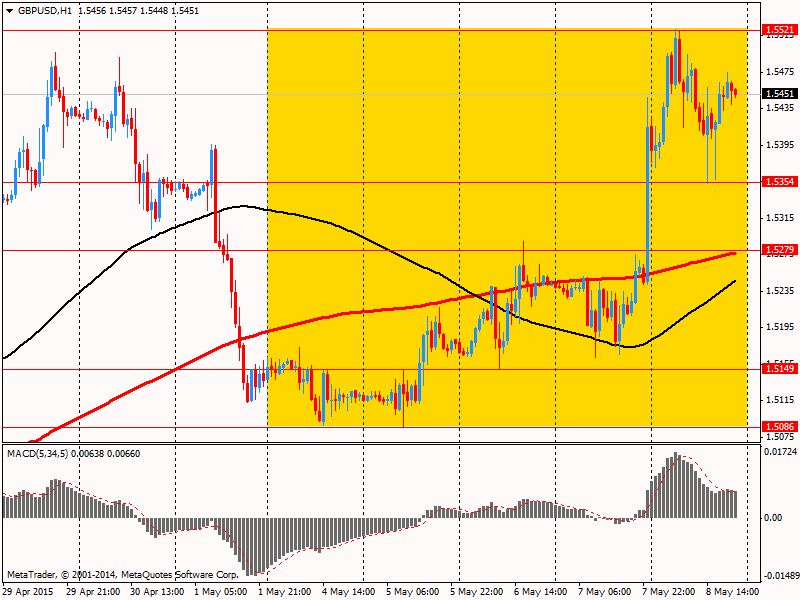 Фунт вырос к $1.5522, обновив сессионный максимум и достигнув 2-х месячного максимума, так как предварительные результаты выборов в Великобритании указывают на более сильную, чем ожидалось, поддержку Консервативной партии под руководством премьер-министра Дэвида Кэмерона. Вероятная победа на выборах Консервативной партии "принесла облегчение инвесторам", говорит дилер японского банка. Согласно прогнозам, партия Кэмерона получит наибольшее число мест в парламенте, и это спровоцировало рост покупок и срабатывание стоп-приказов, отмечает дилер.