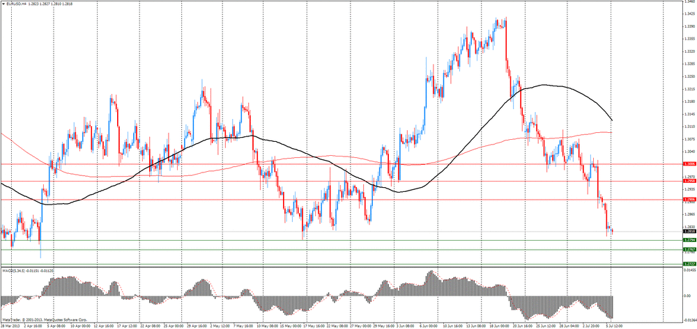 В начале новой недели EUR/USD торгуется в узком диапазоне в районе $1.2830, поскольку рынки продолжают переваривать приличные результаты пятничного отчета по занятости в США, а также ожидают результатов сегодняшнего заседания Еврогруппы. Оба банка демонстрируют медвежий настрой в отношении единой валюты. Так Commerzbank пишет, что «на прошлой неделе цена подточила важную область поддержки $1.2934/ 1.2885 (78.6% коррекции, восходящий тренд 2012 и 55-недельная МА), в связи с чем пара начала эту неделю в уязвимом состоянии». В центре внимания остаются уровни $1.2796 и минимумы этого года на $1.2740.