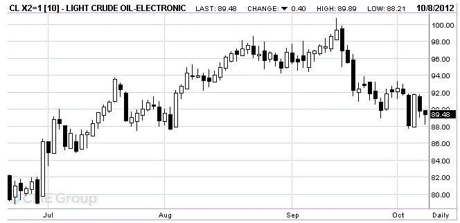 Индекс доллара, который отслеживает изменение валюты против шести других основных валют, в понедельник упал на 0,2% до 79,814 после роста к 80,147, самого высокого уровня с 11 сентября. Также в понедельник состоялось выступление главы Федеральной резервной системы США Бена Бернанке. В своем выступлении в Economic Club of Indiana в Индианаполисе, Бернанке сказал, что стратегия центрального банка остается прежней: снижение ставок в целях стимулирования бизнеса и потребительских расходов. Он также добавил, что ФРС по-прежнему намерена «держать инфляцию под контролем». Бернанке также сказал, что обещание удерживать ставки на низком уровне до середины 2015 года не означает, что ФРС ожидает слабого экономического роста в течение ближайших трех лет.
