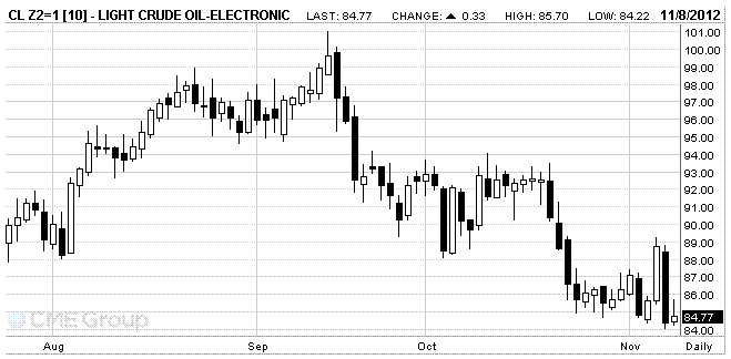 Стоимость декабрьских фьючерсов на американскую легкую нефть марки WTI (Light Sweet Crude Oil) выросла до 84,77 доллара за баррель на Нью-Йоркской товарной бирже.
