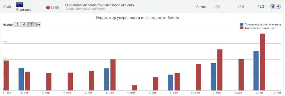 Небольшую поддержку евро оказали данные по еврозоне. Результаты опроса, представленные исследовательской группой Sentix, показали, что настроения инвесторов в еврозоне значительно улучшились в январе, превысив оценки аналитиков, и достигнув самого высокого уровня примерно за полтора года. Согласно данным, индикатор уверенности инвесторов вырос в январе до 18,2 пункта по сравнению с 10,0 пункта в декабре. Аналитики ожидали, что показатель повысится лишь до 12,6 пункта. Последнее значение было самым высоким с августа 2015 года. (тогда индекс составлял 18,4 пункта). Отражая улучшение настроений, суб-индекс текущих условий подскочил в январе до 16,5 пункта с 8,3 пункта в декабре, достигнув максимума с июля 2011 года. Тем временем, индекс ожиданий вырос до 20,0 пункта по сравнению с 11,8 пункта в декабре.