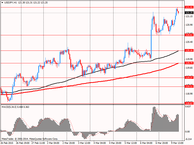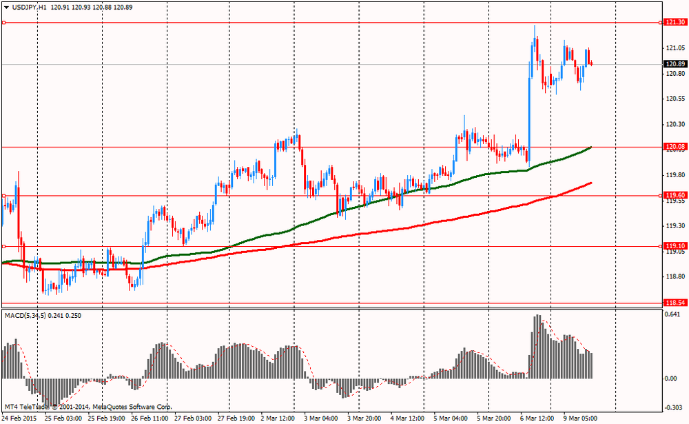 Иена упала по отношению к доллару после публикации данных по ВВП Японии. С сезонной коррекцией рост ВВП Японии в четвертом квартале 2014 года, согласно пересмотренным данным, составил 1,5% в годовом исчислении, что ниже предварительных данных о росте на 2,2%. Рост ВВП оказался ниже из-за слабых капитальных вложений и вклада показателя запасов. К уровню третьего квартала рост ВВП с сезонной коррекцией составил 0,4%, при предварительном значении 0,6%. Дефлятор ВВП был выше ожиданий 2,4% при предварительном значении 2,3%, что показывает ускорение инфляции.