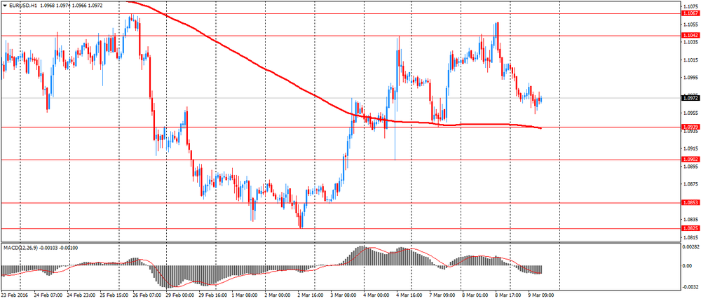Ключевым событием дня будет оглашение решения по процентным ставкам ЕЦБ (в 12:45 GMT) и пресс-конференция главы ЕЦБ (в 13:30 GMT). Большинство экспертов, опрошенных Reuters, полагают, что в ходе мартовского заседания ЕЦБ понизит ставку по депозитам еще на 0,1%, до -0,4%, но оставит без изменений свою ключевую ставку рефинансирования - на уровне 0,05%.