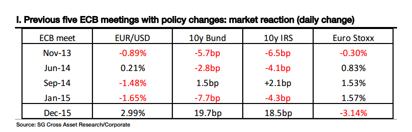 Также аналитики напомнили, какой была реакций рынка на итоги предыдущих заседаний ЕЦБ, в ходе которых политики меняли настройки денежно-кредитной политики.