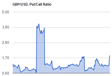 - общий открытый интерес по CALL опционам с датой экспирации 3 мая составляет 6144 контракта, при этом максимальное количество контрактов привязано к страйку $1,5500 (1130);