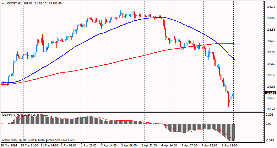Валютная пара USD/JPY, обновив максимум сессии, вернулась к цене открытия. Японская иена продолжила укрепление, получив поддержку со стороны решения Банк Японии, оставившего курс денежно-кредитной политики сохранившим объемы программ кредитования и покупки активов без изменений, несмотря на повышение налога на потребление в Японии с 1 апреля. ЦБ подтвердил целевой показатель расширения денежной базы в диапазоне от 60 до 70 трлн иен ($681 млрд) в год. В прошлом месяце глава Харухико Курода заявил: сохраняются высокие шансы увидеть в следующем году инфляцию у целевого уровня Центрального банка в 2%.