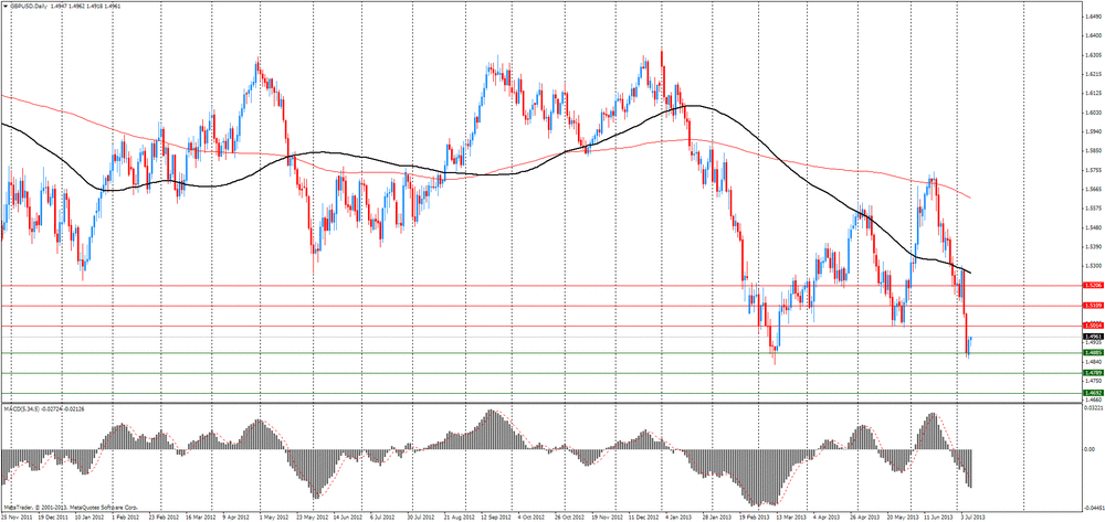 Курс фунта существенно снизился против доллара, чему способствовала публикация отчета по Британии. Как показали последние данные, которые были представлены сегодня Управлением национальной статистики, объем промышленного производства в Великобритании не изменился в мае месяце, в то время как производство в обрабатывающей промышленности неожиданно уменьшилось.