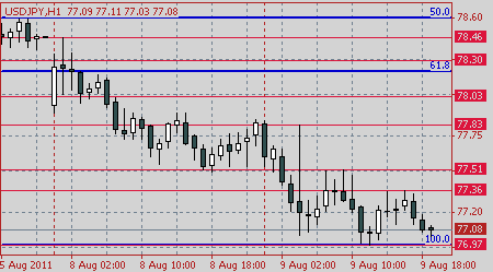 Поддержка 1:Y77.00 (область сессионного минимума и минимума 4 августа)