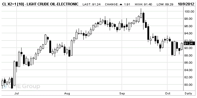 Стоимость ноябрьских фьючерсов на американскую легкую нефть марки WTI (Light Sweet Crude Oil) составляет 91.28 доллара за баррель на Нью-Йоркской товарной бирже.
