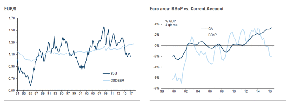 "Пара EUR/USD резко снизилась после президентских выборов в США , и сейчас торгуется ниже нашей первоначальной 3-месячной цели. Такая ситуация предполагает, что паритет может быть достигнут раньше, чем следует из нашего текущего прогноза. Мы по-прежнему считаем, что пара EUR/USD будет демонстрировать нисходящую динамику из-за расходящихся перспектив роста, инфляции и денежно-кредитной политики в США и еврозоне. В основном ход торгов в паре EUR/USD будут диктовать движения доллара США, но политический риск, связанный с выборами в различных странах еврозоны, усиливает риск снижения курса евро. Кроме того, мы видим несколько более долгосрочных фундаментальных факторов, которые будут способствовать снижению пары EUR/USD. Во- первых, динамика потоков капитала должна становится все более негативной по отношению к евро, так как резиденты еврозоны направляют средства за рубеж. Во-вторых, мы считаем, что существует структурный элемент дезинфляции на периферии еврозоны, поскольку она продолжает улучшать конкурентоспособность по сравнению с "центром" еврозоны. В результате, мы считаем, что инфляция будет повышаться медленнее, чем во время обычного цикла. В соответствии с нашими прогнозами, гармонизированный индекс потребительских цен составит лишь 1,2% в 4-м квартале 2018 года. Это должно поддерживать политику ЕЦБ аккомодационной, сохраняя давление на курс евро", - заявили эксперты.