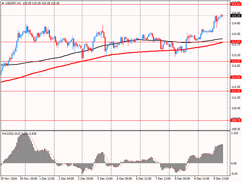 Японская иена существенно подешевела против доллара, обновив 10-месячный максимум, что главным образом связано с усилением позиций американской валюты, а также падением спроса на активы-убежища, до которых традиционно относится иена. Аналитики заявляют, что инвесторы вновь начали наращивать длинные позиции по доллару США после потенциального риска со стороны заседания ЕЦБ. Постепенно внимание участников рынков смещается на заседание FOMC, которое состоится на следующей неделе. На текущий момент ужесточение денежно-кредитной политики ФРС на декабрьском заседании практически полностью учтено в ценах. Поэтому наиболее важным в заседании будет не само повышение ставки, а прогнозы ФРС относительно дальнейших планов, а также комментарии Джанет Йеллен на этот счет.