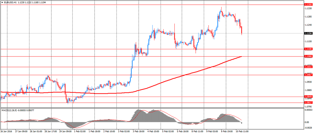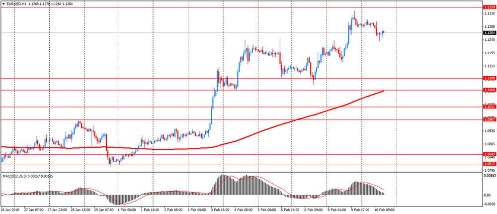 Евро существенно подорожал против доллара США, впервые с 22 октября 2015 года преодолев отметку $1.1300. Причиной этому было повсеместное ослабление американской валюты. Небольшое влияние также оказали данные от Министерства торговли, которые показали, что запасы на оптовых складах в США упали в декабре третий месяц подряд, это еще один признак того, что компании сокращали пополнение запасов к концу 2015 года на фоне слабых продаж. Запасы упали на 0,1% с учетом сезонных колебаний до $582 млрд. Эксперты ожидали уменьшение на 0,2%. Тем временем, изменение запасов за ноябрь было пересмотрено до -0,4% с -0,3%. В годовом выражении рост запасов замедлился до 1,9% с 6% в начале прошлого года. Продажи у оптовиков упали на 0,3%. С декабря 2014 по декабрь 2015 года оптовые продажи опустились на 4,5%, в основном из-за меньшего спроса на металлы. Соотношение запасов к продажам не изменилось и составило 1,32 месяца.