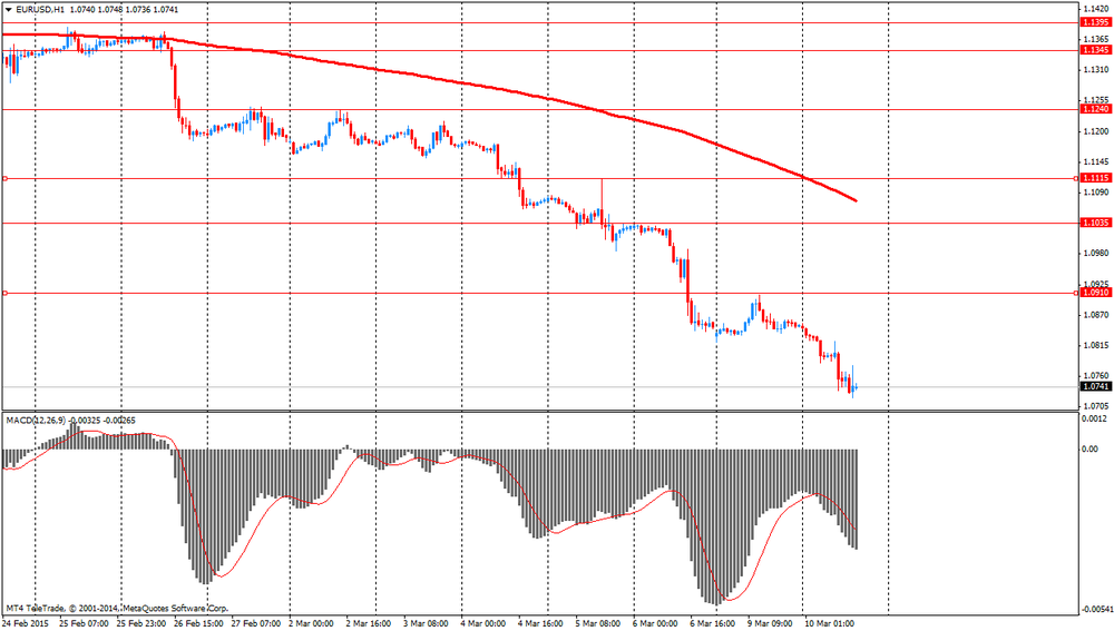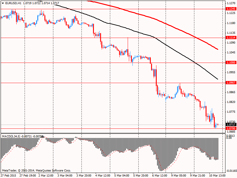 Доллар США достиг новых максимумов по отношению к основным валютам, после того как президент ФРС-Даллас Ричард Фишер, который должен уйти в отставку 19 марта, заявил, что центральный банк США не должен откладывать процесс повышения ставок. Заседание ФРС состоится на следующей неделе. Инвесторы и аналитики прогнозируют, что сильные февральские данные по занятости будут способствовать тому, что центральный банк, возможно повысит процентную ставку в середине года. Также в понедельник Европейский центральный банк начал свою программу покупки облигаций, которая, как ожидается, ослабит единую валюту. Евро снизился до самого низкого уровня с сентября 2003 года.