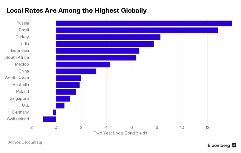 1. Привлекательные процентные ставки: При ставке 13,7% рублевые двухгодичные облигации являются самыми прибыльными в 45 странах, проанализированных агентством Bloomberg. Так как наблюдаются некоторые признаки стабилизации рубля, у инвесторов появляется возможность для размещения средств в России и получения более высоких процентных доходов.