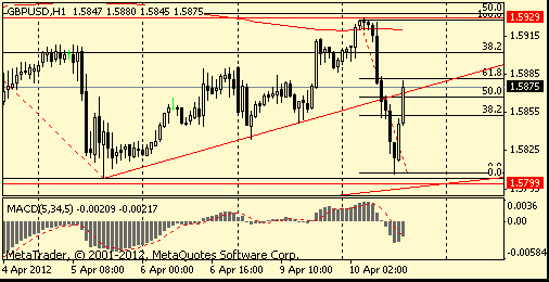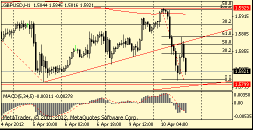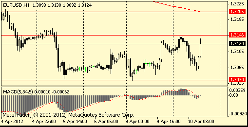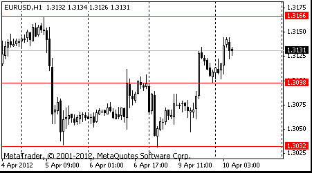 Евро снизился против основных валют на фоне роста опасений относительно нового витка кризиса в Европе. Данные опасения стали причиной роста доходности гособлигаций Испании и Италии. В частности, доходность испанских 10-летних облигаций сегодня достигла 5,96%, что является крайне высоким показателем для станы с уровнем безработицы 20%. Поводом для продаж единой валюты также стали данные по индикатору уверенности инвесторов Еврозоны от Sentix. Показатель за апрель составил -14.7 пунктов при прогнозе -7.4.