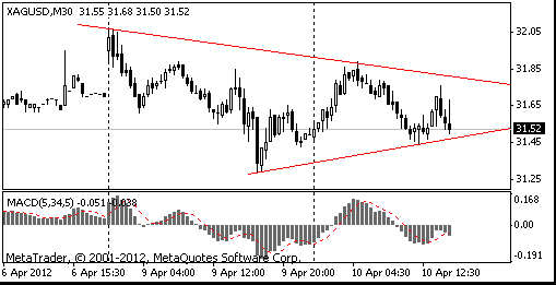 В случае преодоления нижней границы данной фигуры и закрепления ниже, первой целью снижения станет область $31,00 (минимум 4 апреля).