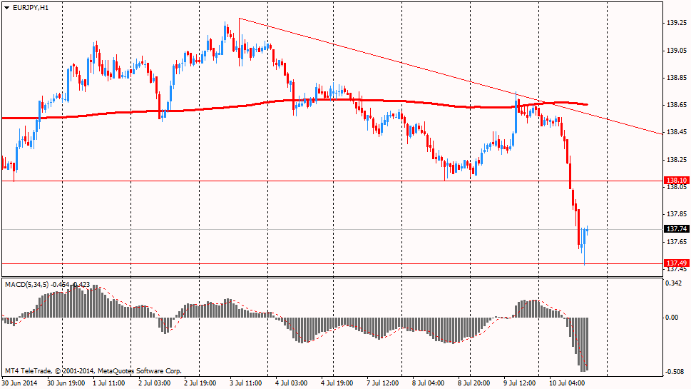 Пара EUR/JPY в течении сессии установила минимум на уровне Y137,48, отступив к текущему моменту в район Y1037,70.