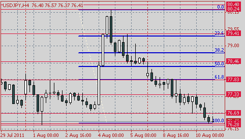 Сопротивление 3: Y77.80/90 (область минимумов 9 августа, 61.8% FIBO Y80.20/Y76.30)