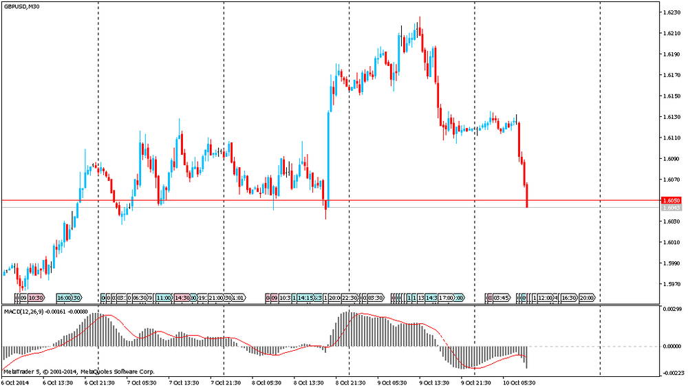 Фунт резко подешевел против доллара, что, в основном, было связано с намеками Драги на готовность ЕЦБ изменить размер и состав нетрадиционных мер. Участники рынка также продолжают анализировать итоги заседания Банка Англии, где было принято решение оставить базовую процентную ставку неизменной - на уровне 0,5% годовых. Решение совпало с ожиданиями аналитиков. Напомним, в последний раз регулятор менял ставку 5 марта 2009 года - тогда она была снижена до текущего уровня в 0,5%, являющегося минимальным за 320 лет истории Центробанка. На прежнем уровне сохранен и объем программы покупок активов (£375 млрд.). Последнее ее изменение имело место 5 июля 2012 года - повышение на £50 млрд. Банк Англии использует эти средства для приобретения с рынка государственных облигаций Великобритании, что поддерживает цены на эти бумаги и сохраняет доходность по ним на низком уровне. Теперь рынку остается ждать протокола заседания, который выходит 22 октября и может пролить свет на то, кто еще, кроме МакКафферти и Уила, голосовал за повышение процентной ставки.