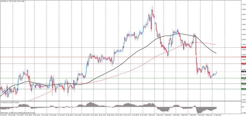 Евро торговался у двухнедельного минимума против доллара, на фоне обостряющейся политической ситуации в Италии и Испании. После того, как в газете El Pais были опубликованы компрометирующие материалы на премьер-министра Испании, Мариано Рахой столкнулась с призывами оппозиции уйти в отставку. Также в преддверии выборов 24-25 февраля проведенные опросы среди населения Италии показали рост популярности бывшего премьера Италии Сильвио Берлускони, который в октябре прошлого года был признан виновным в уклонении от уплаты налогов.