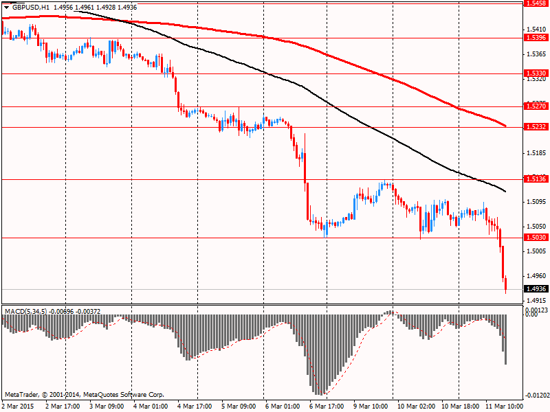 Фунт значительно подешевел против американской валюты, достигнув минимума с 10 июля 2013 года. Спрос на доллар по-прежнему сохраняется после публикации отчета по занятости в США, укрепившего надежды на подъем ставок. ФРС, как ожидается, начнет повышать процентные ставки в середине текущего года. Также инвесторы готовятся к заседанию ФРС, чтобы узнать, не отказались ли политики от своего намерения быть терпеливым в отношении сроков подъема ставки.