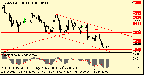 В данный момент пара торгуется в области Y81,00, отступив от нижней границы нисходящего канала, который четко прослеживается на четырех часовом временном периоде.