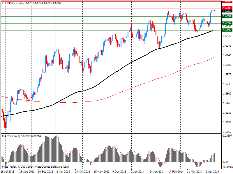 Между тем, добавим, что сегодня евро получил поддержек от немецких данных по инфляции. Согласованная по методологии ЕС инфляция в Германии замедлилась до самого низкого уровня почти за четыре года, показали окончательные данные Destatis. Гармонизированный индекс потребительских цен (ГИПЦ) вырос на 0,9 процента в годовом исчислении в марте в соответствии с предварительными оценками. Это было самым слабым уровнем с июня 2010 года. В феврале цены выросли на 1 процент. В месячном измерении ГИПЦ расширился на 0,3 процента, как предполагалось первоначально на 28 марта. Индекс потребительских цен вырос на 1 процент годовых в марте после 1,2 процента подъема в предыдущем месяце. Статистическое бюро подтвердило предварительную оценку. Последний уровень инфляции является самым низким с августа 2010 года. В месячном исчислении потребительские цены выросли на 0,3 процента, в соответствии с предварительным прогнозом. Еще данные Destatis показали, что оптовые цены снизились на 1,7 процента в марте по сравнению с соответствующим месяцем предыдущего года, после снижения на 1,8 процента в феврале и на 1,7 процента в январе. С февраля по март оптовые цены остались без изменений.