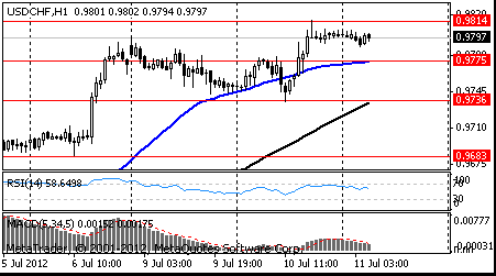 Поддержка 3: Chf0.9685 (минимум 6 июля, МА (200) Н1)
